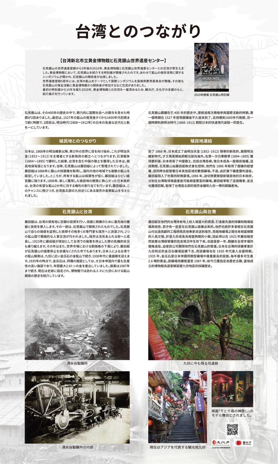 これまで台湾の鉱山との比較研究を始め、あわせて国内の著名な鉱山との比較研究を実施しています。近年はアジアの鉱山以外に16世紀から17世紀の世界の鉱山との比較を行うべく、調査研究を進めています。
